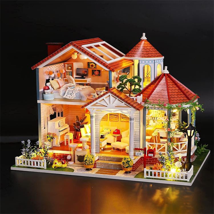 Тази дървена къща за кукли с миниатюрни мебели „направи си сам“ е с гениален дизайн, отлично качество, прецизни аксесоари за рязане и може да пасне перфектно. Има LED светлини, растения, картини, декорации, мебели и т.н., които са реалистични. Освен това тези мебели са изработени от безопасни, нетоксични и висококачествени материали, които са почти подобни на реалните стаи, включително дърво, пластмаса, плат и хартия. Прекарвайте два часа, за да го сглобите всеки ден и се придържайте към него. Тя може не само да помогне на вашите деца да развият добри навици, но и да създаде изненадваща къща за играчки.
