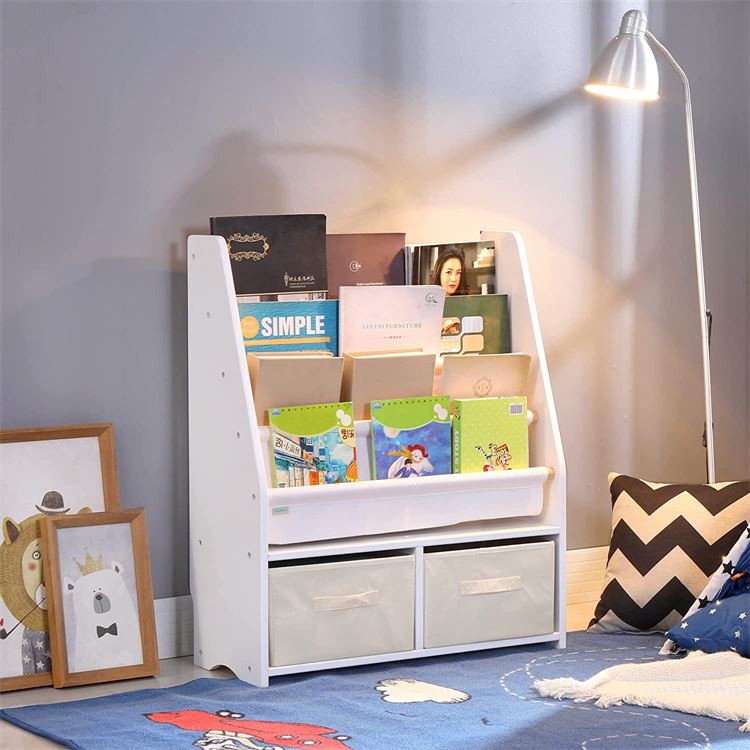 Спестяващ място дизайн и максимално пространство за съхранение, могат да съхраняват голям брой книги, списания, играчки и др. Книгите могат да се показват отпред или отзад вместо на гръбнака, което улеснява децата да избират книги сами. Насърчава организацията и уменията за четене за момичета и момчета на възраст 3 и повече години. Здравата дървена конструкция е лесна за сглобяване и почистване.